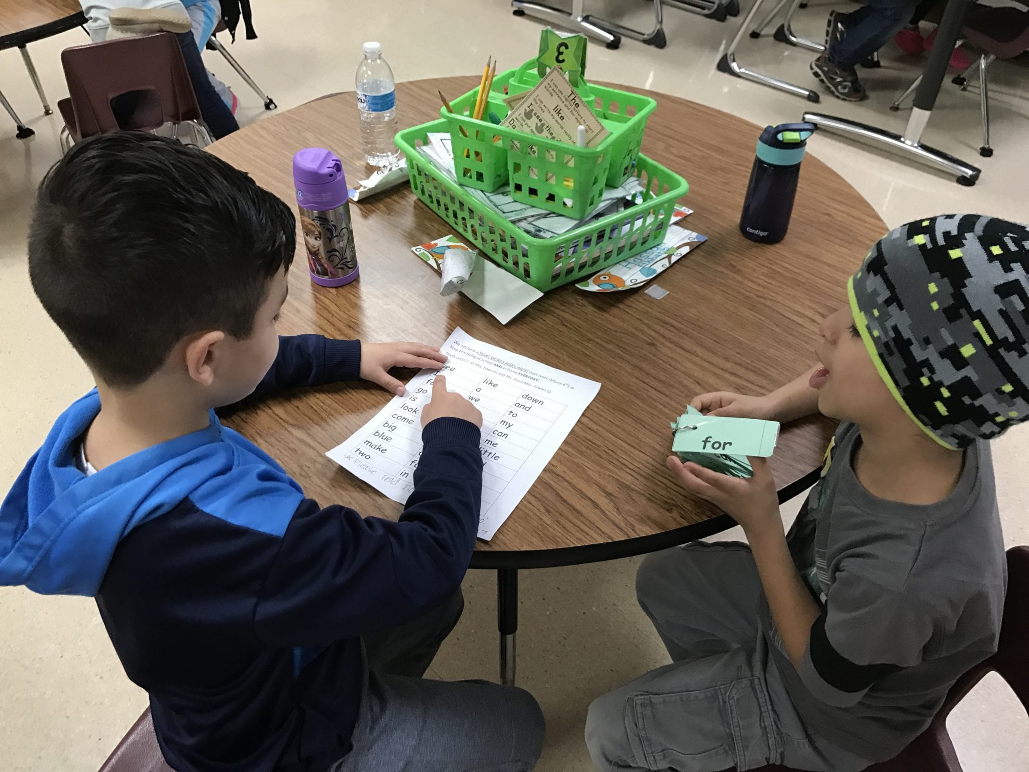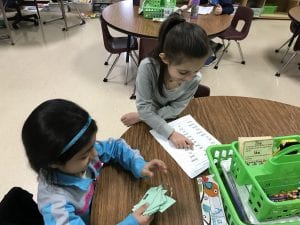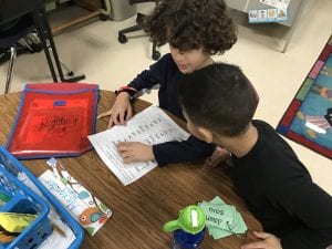 - Folder- sign behavior calendar, letter u bag, and spelling words each in notebook, constants blue and vowels in red